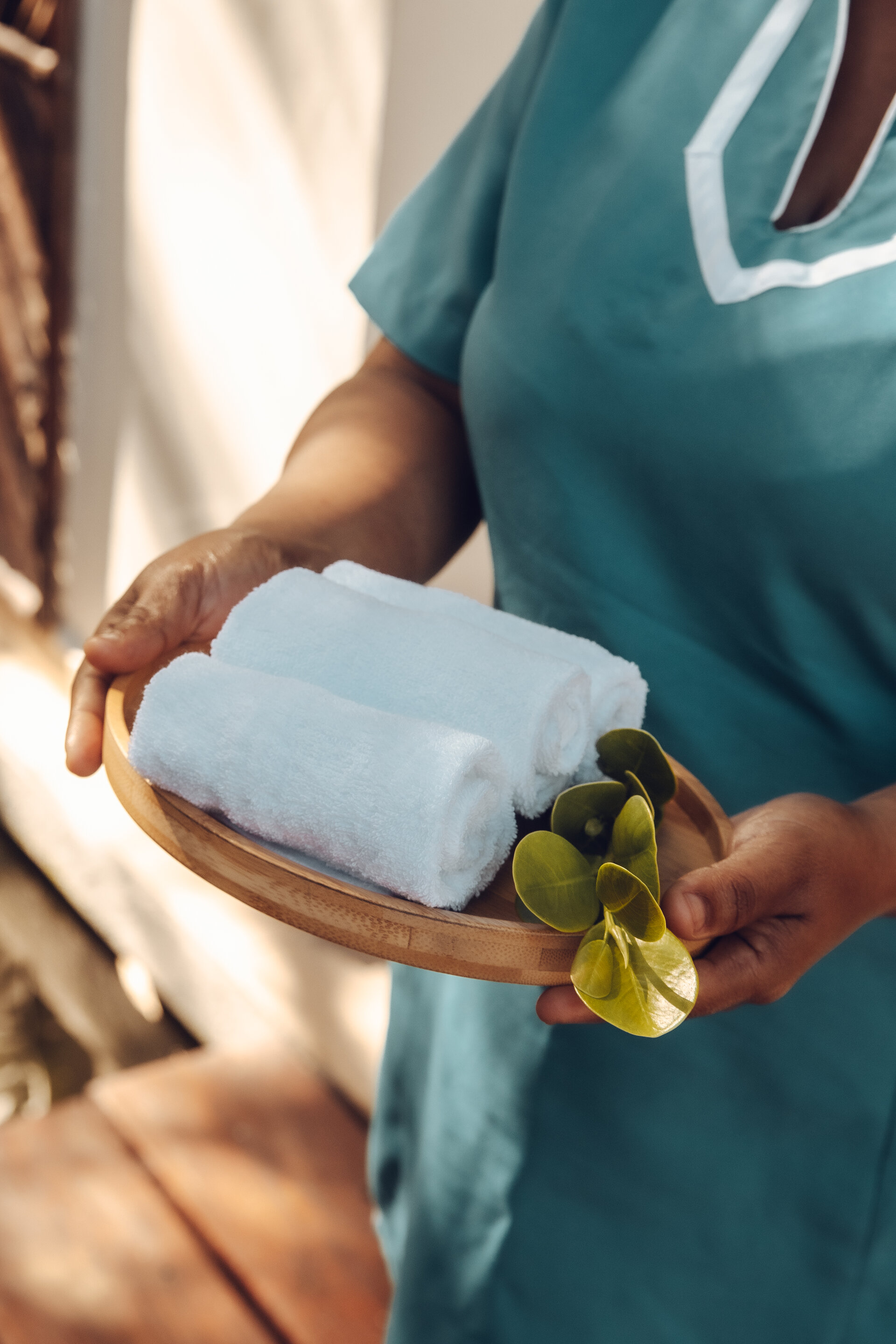 a person holding a plate of towelsLink to Larger Item Photo, ListItemCarouselImage1